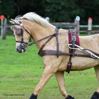 The bridle comes standard with decorative rosettes and a plain browband and decorative rosettes. It may also be ordered with plain rosettes, clincher browband or a choice of coloured browbands. Talk to us for further details about options available.